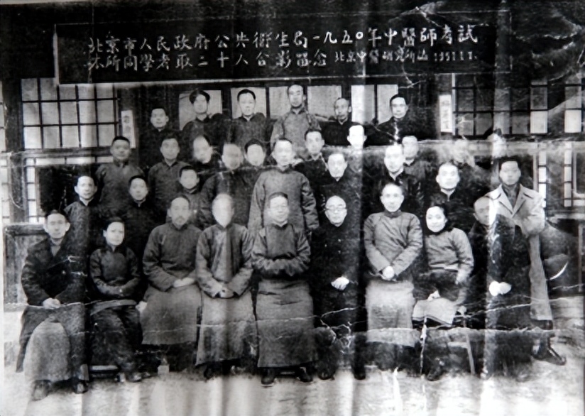 1950年,“私立北平中医研究所”考取中医师资格20人与老师合影,前排右2为柴嵩岩。