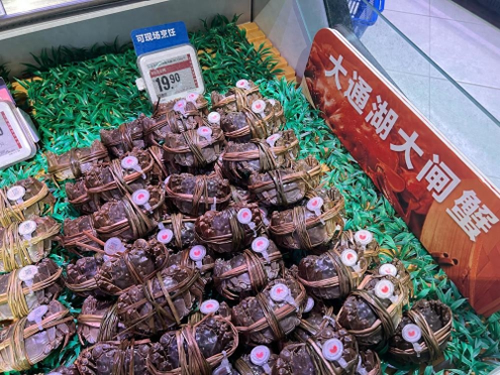 想要价格实惠,湖南本地的大通湖大闸蟹是不错的选择。在盒马,90克-110克(2两左右)大通湖母蟹每只19.9元,99元可以买6只。