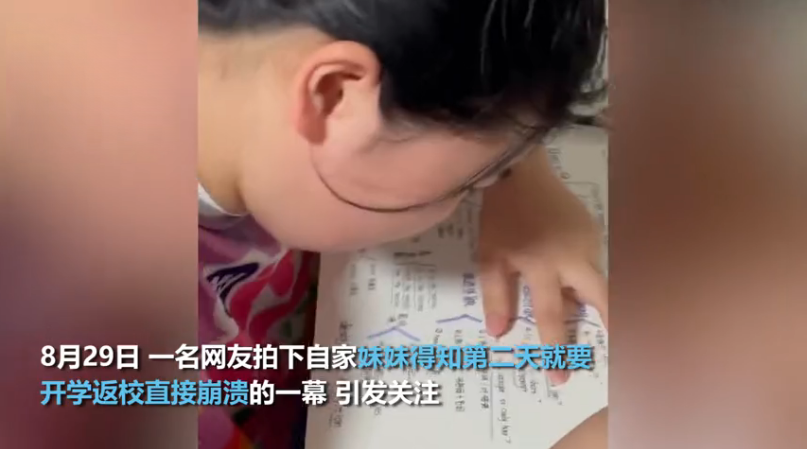 因为弄错开学日期,女孩得知隔天开学崩溃大哭,狂补作业到凌晨