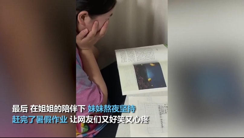 女孩倒在床上边哭边喊,说自己的作业还没做,书也没读完。看到妹妹这个样子,姐姐虽然气不打一处来,还是忍不住笑了。最后女孩在姐姐的陪同下补作业,直到凌晨四点才全部完成,网友们都忍俊不禁